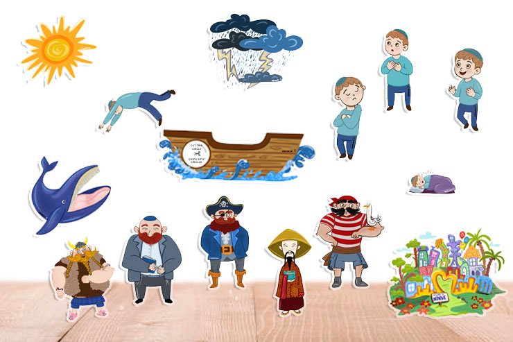 Bring the story of Jonah and the Great Fish to life with our beautifully illustrated character set. It includes the story adapted for children, ready to be narrated with special effects.